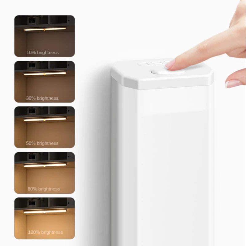 This Smart Motion Sensor LED Night Light features a PIR sensor with a 120° detection angle and a sensing range of approximately 3 meters, designed for use in low-light conditions. Equipped with both a button and motion sensor switch, it offers wireless dimming and USB charging for convenience. Ideal for bedrooms, living rooms, kitchens, bathrooms, wardrobes, and cabinets, it provides efficient and responsive illumination tailored to your needs. Note that the motion induction only activates in the dark and is not functional in bright environments.