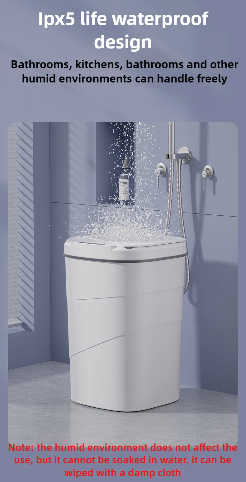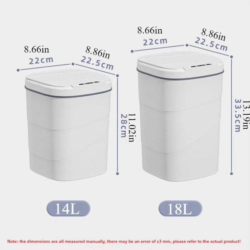 This Smart Trash Can operates on AA dry batteries, which are not included. Constructed from durable plastic, it features a rectangular, standing design with a touchpad interface for ease of use. The device is not smart-enabled and contains no high-concern chemicals, ensuring a safe and practical option for waste disposal.